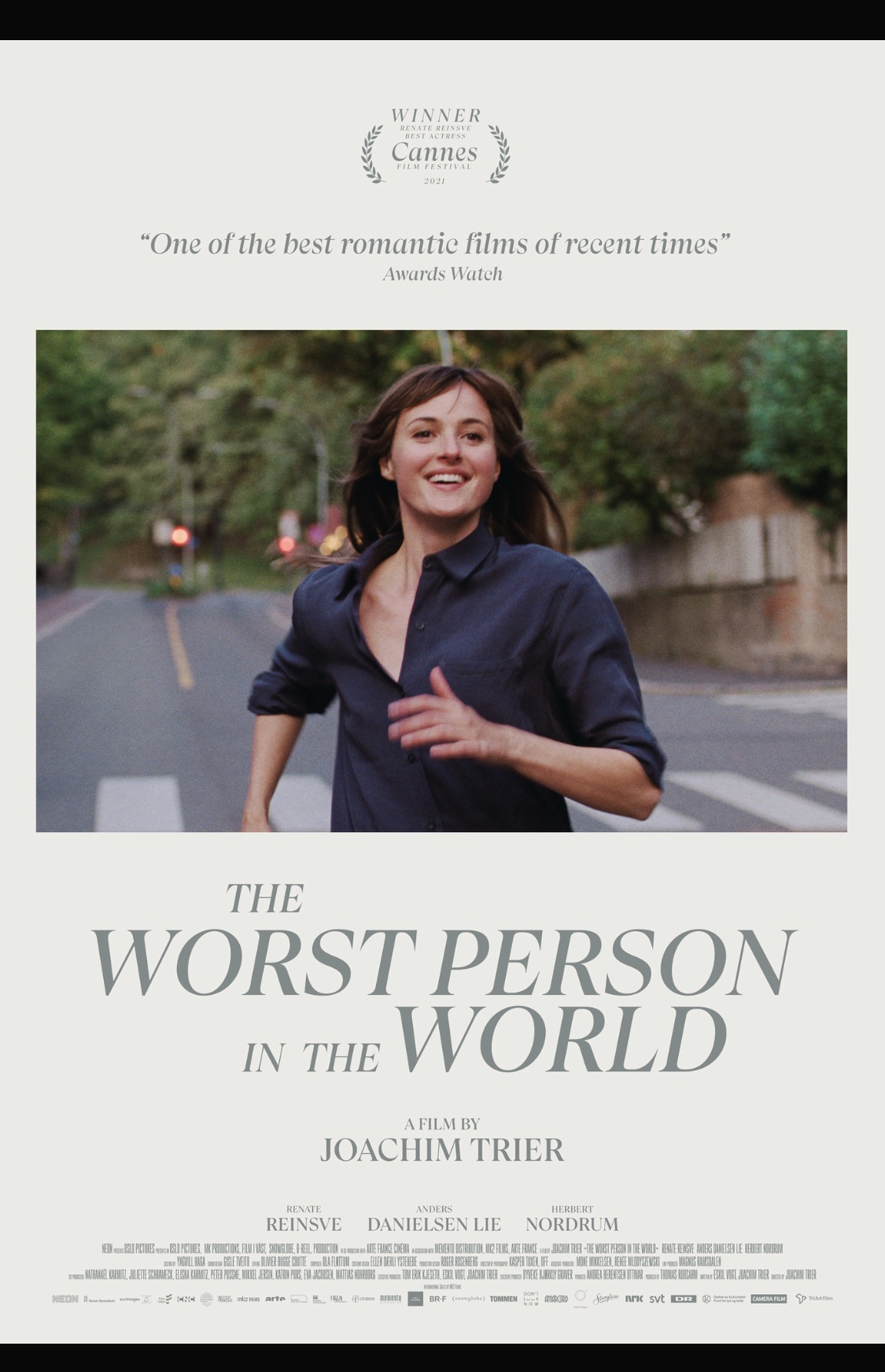 Much has been made of Ms. Reinsve’s performance and she certainly deserves the accolades. However, we shouldn’t overlook the outstanding work of Anders Danielsen Lie in a difficult role. Filmmaker Joachim Trier’s previous work also includes THELMA (2017) and LOUDER THAN BOMBS (2015), and his creativity is most welcome. Two sequences stand out in his latest. In one, the world shifts into ‘freeze frame’ mode as Julie runs through the streets of Oslo to find her new love, and in the second, we follow her in the midst of a drug hallucination after experimenting with mushrooms. In the story, Trier focuses on the dynamics between partners and how the stages of life can complicate things. It’s charming and funny, but also quite serious, as he certainly doesn’t buy into the ideal that movies must have happy endings. In regard to the title, rather than describe Julie, it’s more likely meant to explain how many people think of themselves as they make decisions and mistakes – it’s really a show of humanity. And quite a good one.