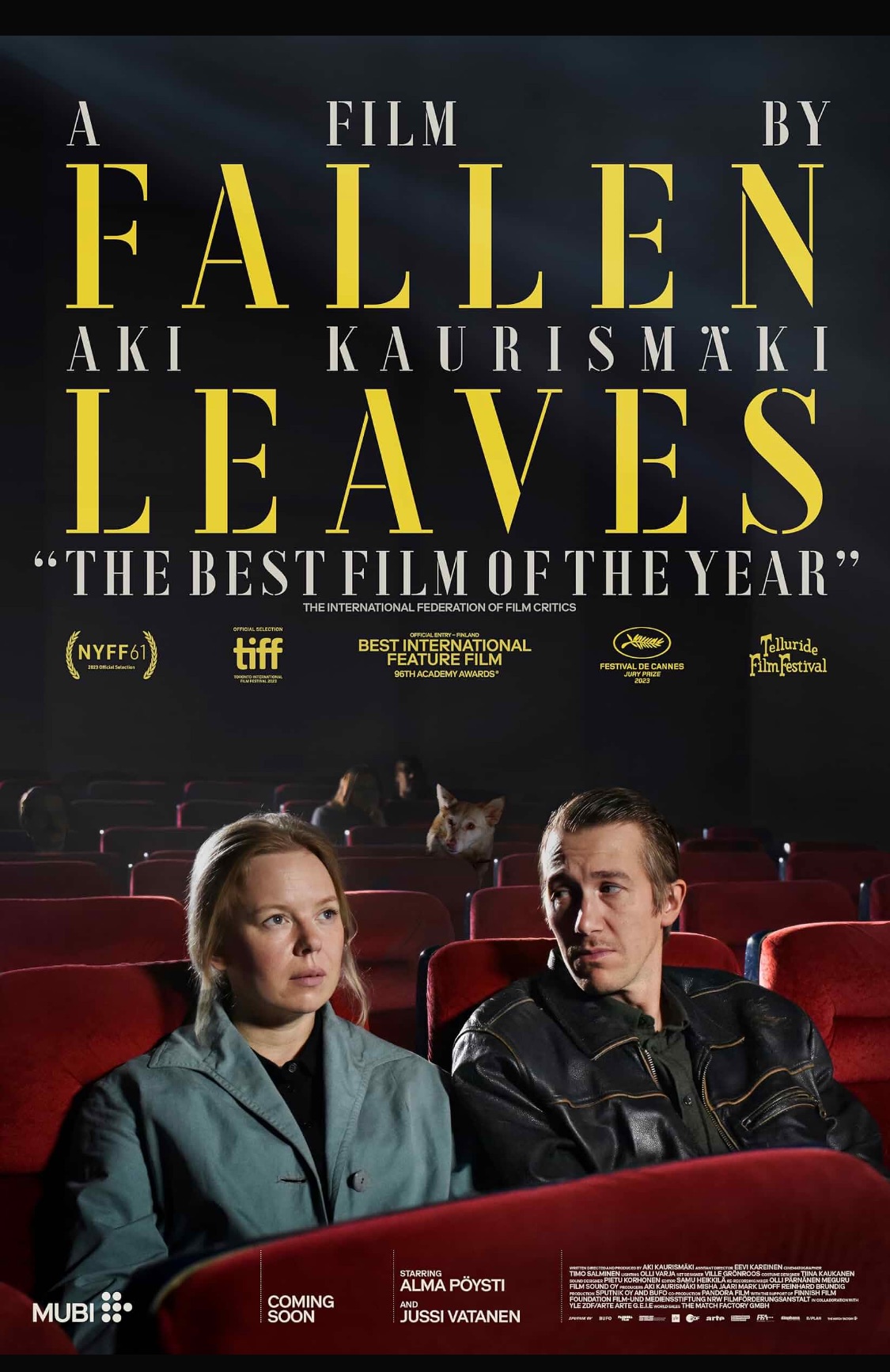 These two leads are Alma Poysti as Ansa and Jussi Vatanen as Holappa. The timeline of their relationship goes something like this: They notice each other on karaoke night at the local tavern, but they don’t speak to each other. They cross paths at a bus stop, again not speaking. When they finally do meet, they go for coffee and a movie (Jim Jarmusch’s zombie flick, THE DEAD DON’T DIE). He then loses her phone number. They almost meet a couple of times outside the cinema (where a Bardot poster is displayed), but just miss each other. When they do meet again, they part ways over a ‘deal-breaker’. She adopts a stray dog she initially names “dog”. When they meet again, they don’t speak.