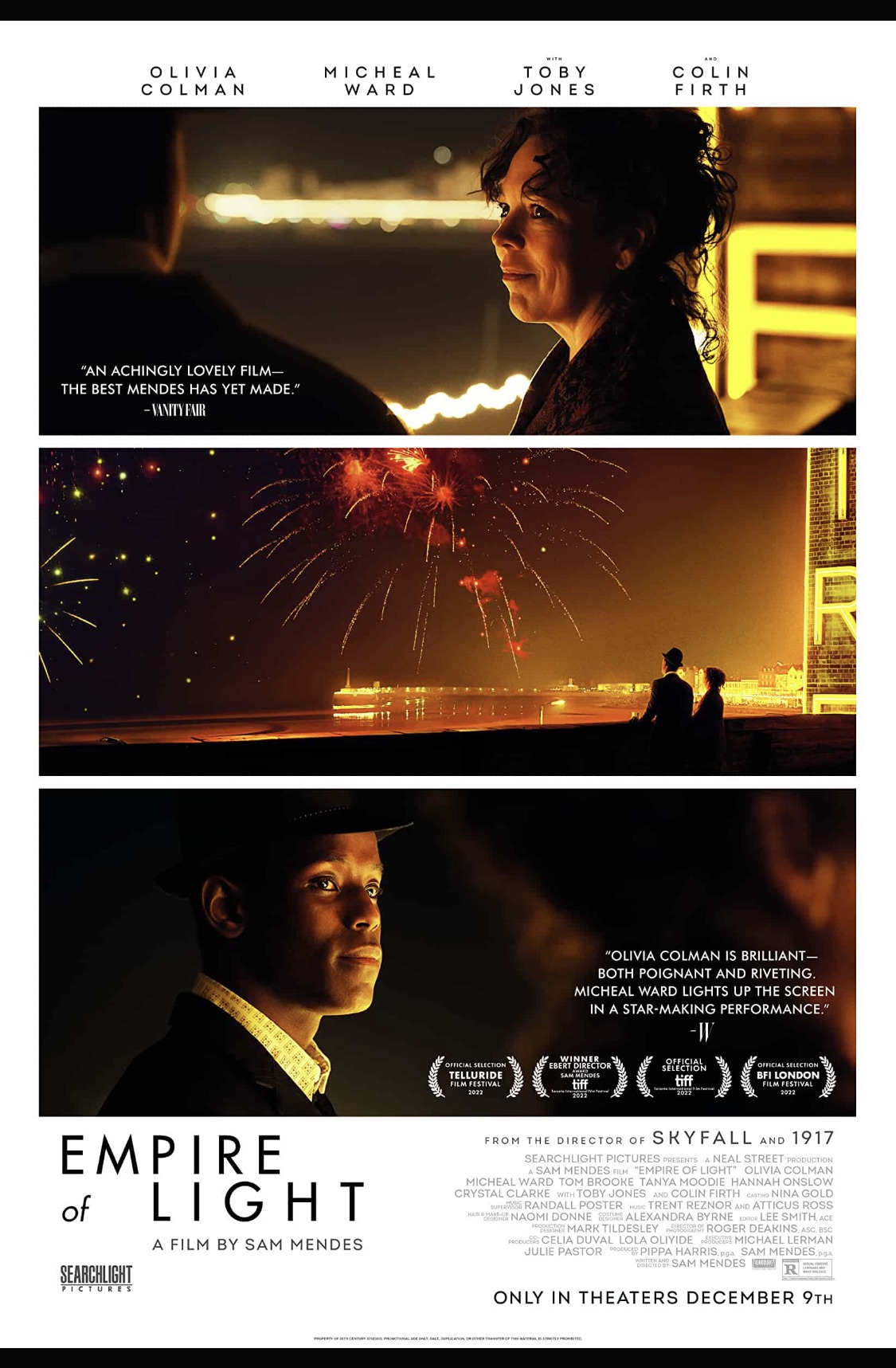 Greetings again from the darkness. Writer-director Sam Mendes won an Oscar for AMERICAN BEAUTY (1999), and has directed other popular movies, including ROAD TO PERDITION (2002) and a couple of James Bond films: SPECTRE (2015) and SKYFALL (2012). This is his first movie since the 3-Oscar winning war film 1917 (2019), and it’s a project that seems designed for Mendes to proclaim his love of movies and belief in movie magic. However, a funny thing happened on the way to movie magic … a movie about mental health, racism, and the Margaret Thatcher era broke out.