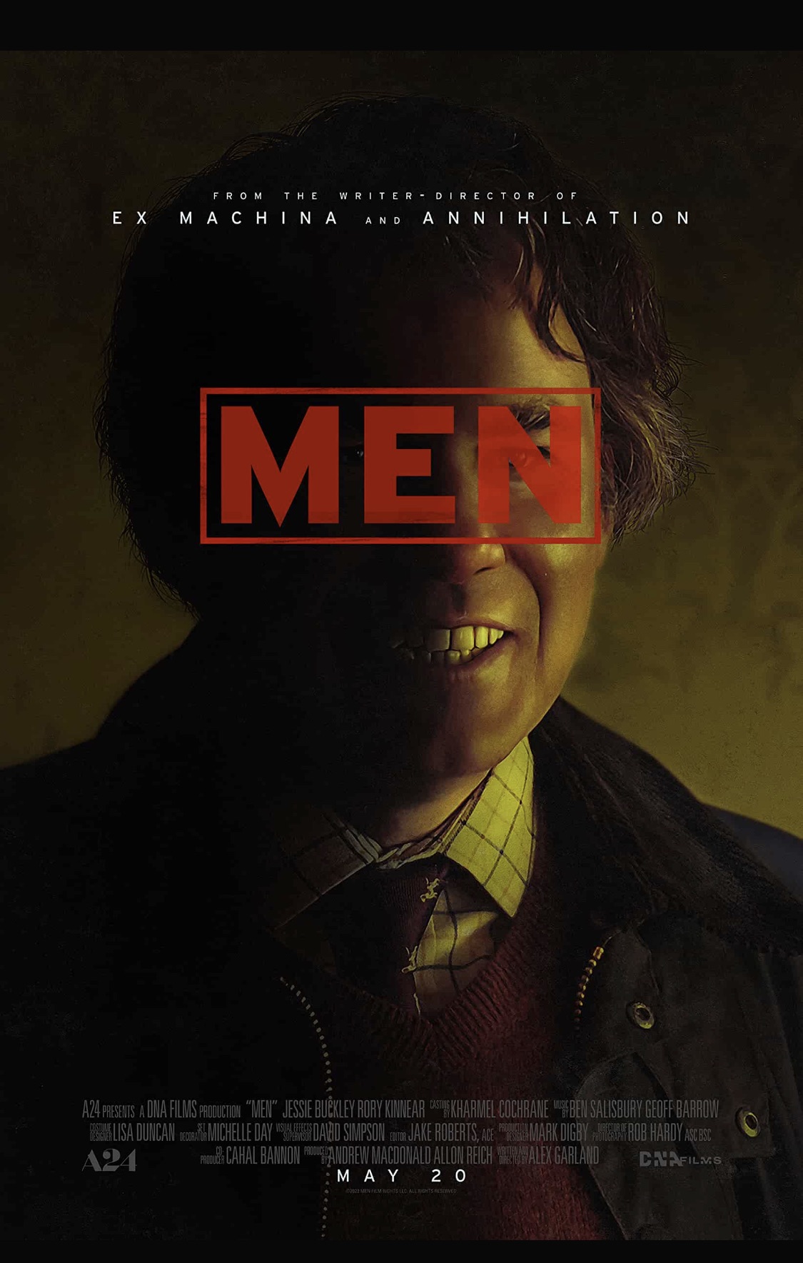 Jessie Buckley, one of the finest actors working today, takes on the lead role in yet another of her unconventional projects. We absolutely respect and admire her risk-taking, and each project benefits from her presence. Some of her recent work includes THE LOST DAUGHTER (2021), I’M THINKING OF ENDING THINGS (2020), WILD ROSE (2018), and a great arc in the “Fargo” series (Season 4). Here she stars as Harper, a Londoner heading to holiday in the English countryside after the death of her husband. When she arrives at her bucolic Airbnb manor, the serenity is apparent … right up until she meets Geoffrey, the landlord. He’s played by Rory Kinnear (Tanner in the recent James Bond movies, and excellent in the “Penny Dreadful” series and its spinoff). Geoffrey’s awkward social skills involve colloquialisms and country charm to ensure that Harper knows she’s no longer in London.