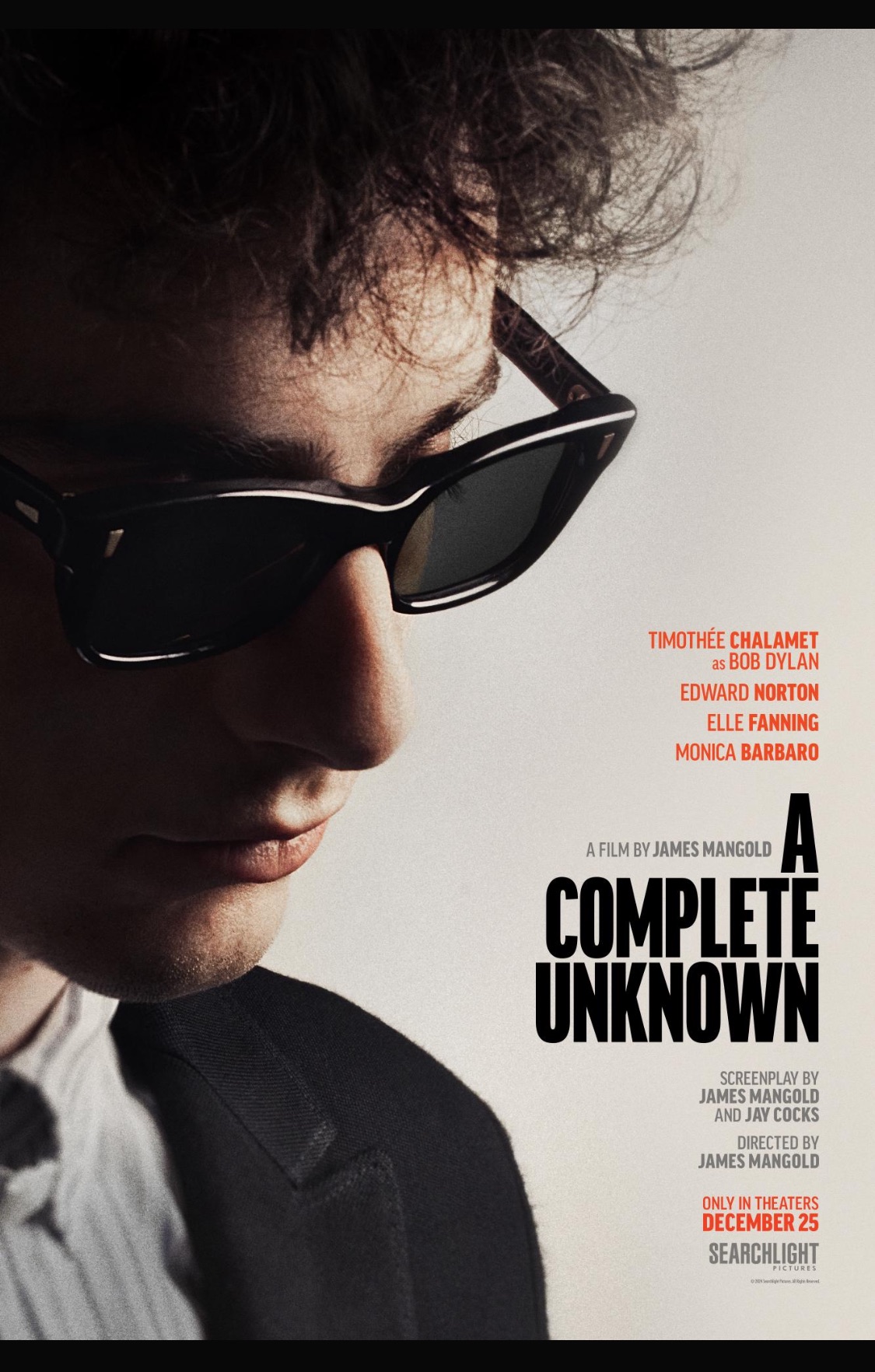 Greetings again from the darkness. As a nineteen-year-old college dropout, Robert Zimmerman traveled from his hometown of Hibbing, Minnesota to New York City so that he could play music and visit his folk hero, Woody Guthrie, who was hospitalized with Huntington’s Disease. Of course, Zimmerman became known as Bob Dylan, and his musical genius continues to this day – more than 60 years and counting. Those early formative years are recounted here by writer-director James Mangold (WALK THE LINE, 2005; 3:10 TO YUMA, 2007; FORD V FERRARI, 2019) and co-writer Jay Cocks (GANGS OF NEW YORK, 2002), who used Elijah Wald’s 2015 book, “Dylan Goes Electric! Newport, Seeger, Dylan and the Night that Split the Sixties” as inspiration.