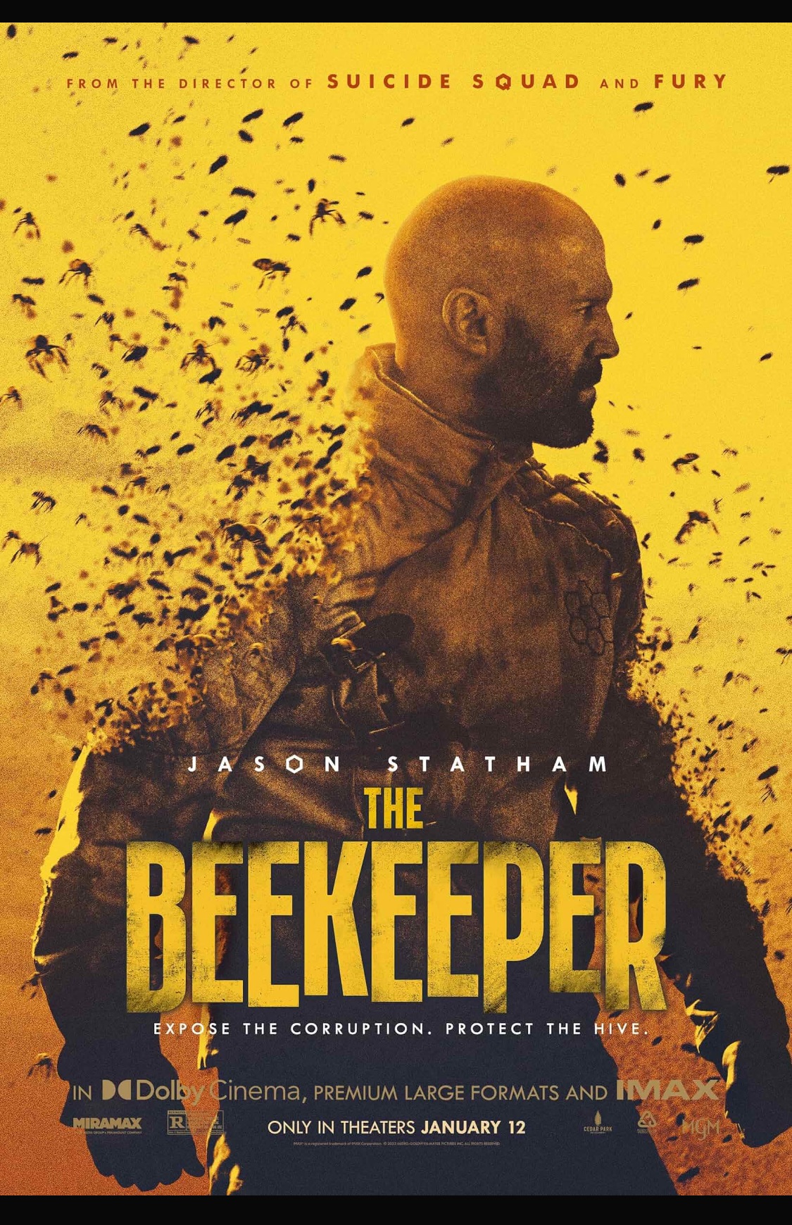 Additional supporting roles include Bobby Naderi as Verona’s FBI partner, Jemma Redgrave as the President, a brief appearance by Minnie Driver as the FBI director (she takes three quick phone calls), and Oscar winner Jeremy Irons as Wallace Westwyld, the retired agent charged with keeping douchey Derek safe. The hook here is that beekeeper Clay is actually a retired secret agent known as “the Beekeeper”, and in one of the oddest sequences, his replacement (a wild character inspired by Prince?) brings a Gatling gun to try and end Clay once and for all. The film is silly and absurd, and right up the alley of those who embrace Statham’s stoic bulldozer of a man.