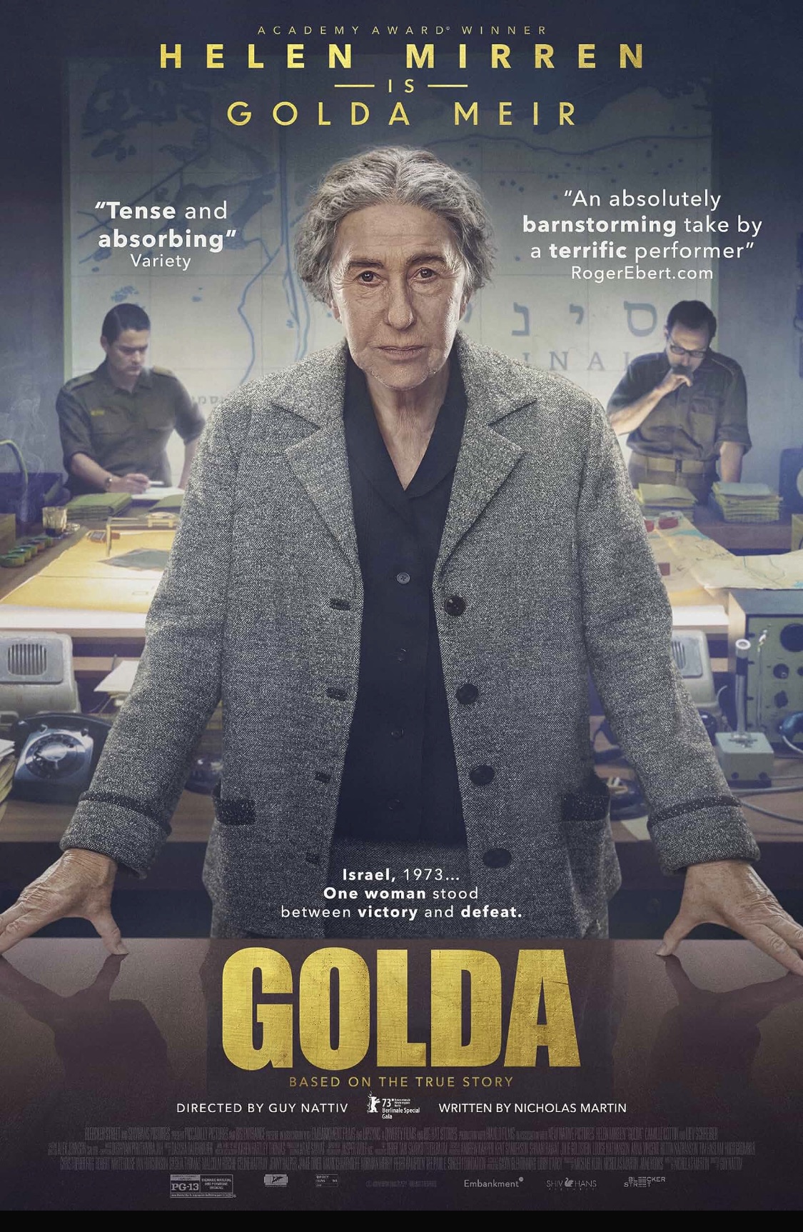 Greetings again from the darkness. More than forty years have passed since the great Ingrid Bergman portrayed Israel Prime Minister Golda Meir in the TV miniseries, A WOMAN CALLED GOLDA (1982). Fighting through cancer during filming, it was Ms. Bergman’s final role, and she won a posthumous Emmy for a performance that left quite a mark on this young (at the time) viewer. Guy Nattiv won an Oscar for his excellent short film, SKIN (2018), and here he takes on a narrow, yet vital window in the term of Golda Meir … a time when the survival of her country was in jeopardy. The screenplay was written by Nicholas Martin (FLORENCE FOSTER JENKINS, 2016).