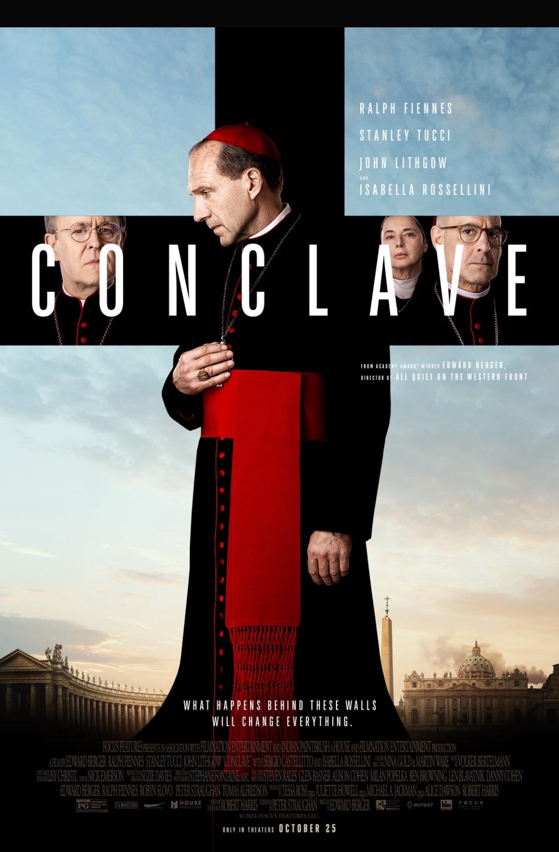 Greetings again from the darkness. It feels like it’s been a while since we had a good old fashioned serious-minded, tension-packed, “big” drama film featuring big movie stars. Well, that’s exactly what director Edward Berger, fresh off his Oscar-winning ALL QUIET ON THE WESTERN FRONT (2022), serves up with his latest. Writer Peter Straughan (TINKER TAILOR SOLDIER SPY, 2011) has adapted the 2016 Robert Harris novel, and the result is a welcome crowd-pleaser that may garner some Oscar consideration.